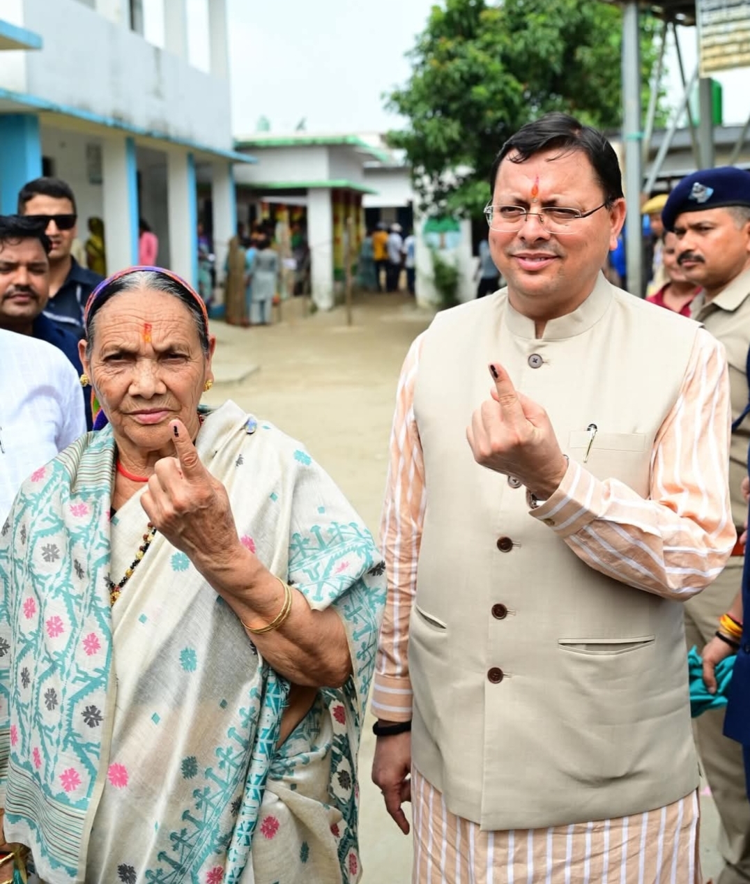 मुख्यमंत्री पुष्कर सिंह धामी ने अपने माता जी के साथ किया अपने मताधिकार का प्रयोग