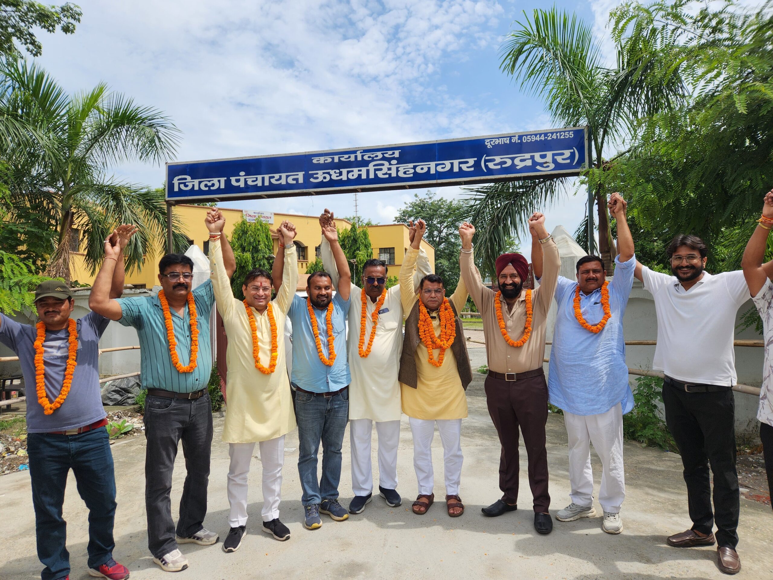 रुद्रपुर। पंचायत चुनाव की सरगर्मी के बीच आज जिला पंचायत कार्यालय पहुंचकर विधायक शिव अरोरा की मौजूदगी मे खानपुर पूर्व जिला पंचायत सदस्य पद सीट पर ममता बजाज पत्नी राजेश बजाज, हरनीत कौर पत्नी गुरबाज सिंह ने अपना नाम वापसी लिया ओर चुनावी मैदान से हटने हुऐ खानपुर पूर्व सीट पर भाजपा समर्थित प्रत्याशी अमिता विश्वास पत्नी जगदीश विश्वास को अपना पूर्ण समर्थन देने का ऐलान किया।