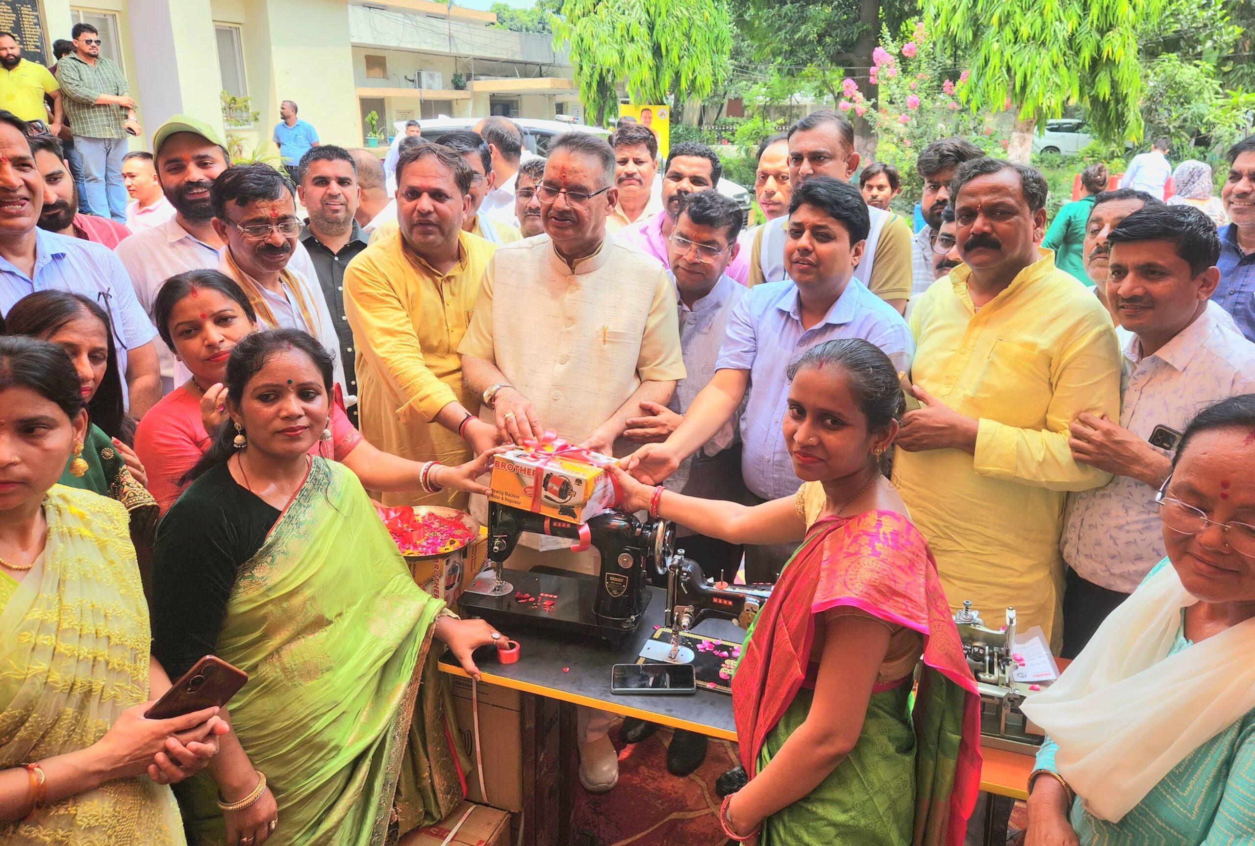 रूद्रपुर। नगर निगम में आयोजित कार्यक्रम में मुख्य अतिथि प्रभारी मंत्री गणेश जोशी ने महिला स्वयं सहायता समूहों द्वारा लगाये गये स्टॉलों का निरीक्षण कर स्वयं सहायता समूहों द्वारा किये जा रहे काम की सराहना की। कार्यक्रम में महापौर विकास शर्मा के प्रयासों से महिला स्वयं सहायता समूहों को स्कूल ड्रेस बनाने का आर्डर भी मिला। निजी संस्थान की ओर से कई स्कूलों की ड्रेसें बनाने का आर्डर दिया गया। इसके साथ ही नगर निगम की ओर से प्रभारी मंत्री ने ड्रेसों की सिलाई करने के लिए नगर आजीविका केन्द्र में कार्यरत महिला स्वयं सहायता समूह को 4 सिलाई मशीनें, 3 पीको मशीनें और एक इंटर लॉक मशीन भी वितरित की। इसके अलावा नगर निगम के प्रशिक्षण केन्द्र में जूट से वस्तुओं का निर्माण करने एवं ऐपण कला का प्रशिक्षण लेने वाली 40 महिलाओं को प्रमाण पत्र भी दिये गये।