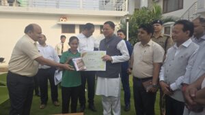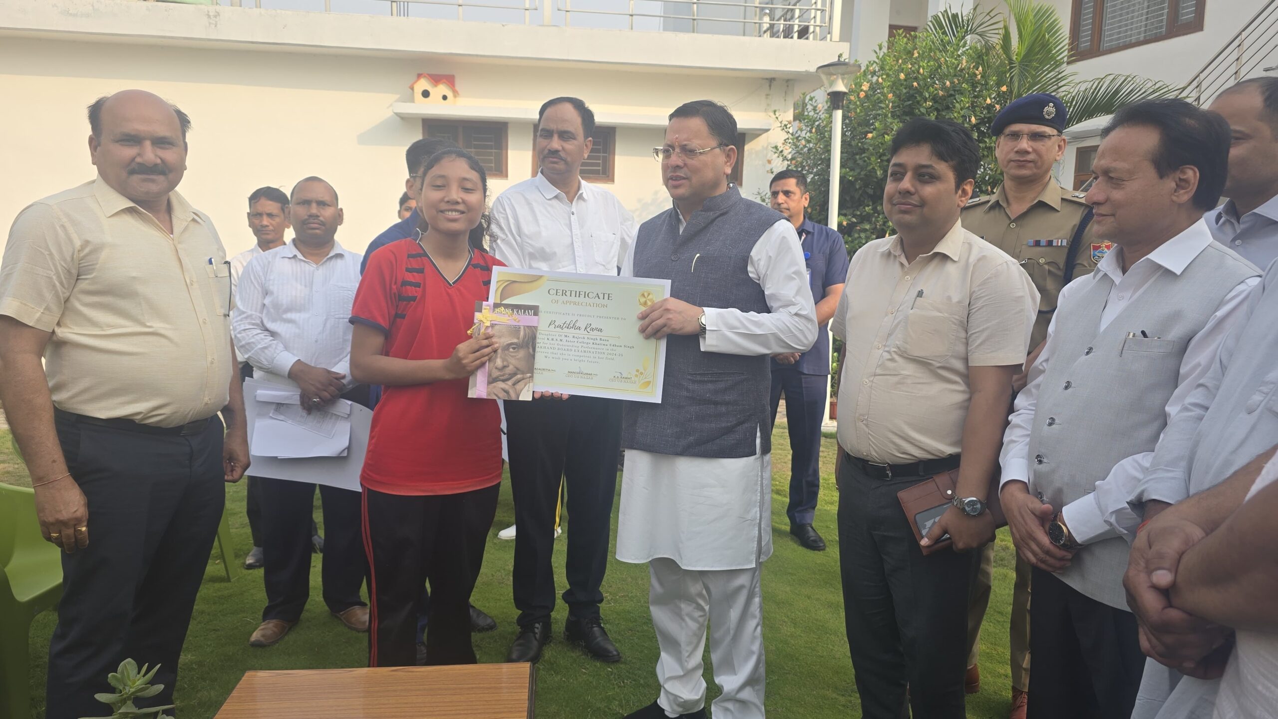 मनीश बावा ( ख़बरीलाल ख़ोज) खटीमा : मुख्यमंत्री पुष्कर सिंह धामी ने शनिवार प्रातः अपने आवास खटीमा में खटीमा क्षेत्र के विभिन्न विद्यालयों के उत्तराखंड बोर्ड व सी बी एस सी बोर्ड के हाईस्कूल, इंटर बोर्ड परीक्षा में अधिकतम अंक लाकर उत्कृष्ट प्रदर्शन करने वाले विद्यार्थियों को प्रशस्ति पत्र देकर सम्मानित किया व मिठाई खिलाकर उन्हें बधाई दी । मुख्यमंत्री धामी ने विद्यार्थियों से संवाद किया व उनके उज्जवल भविष्य की कामना की।