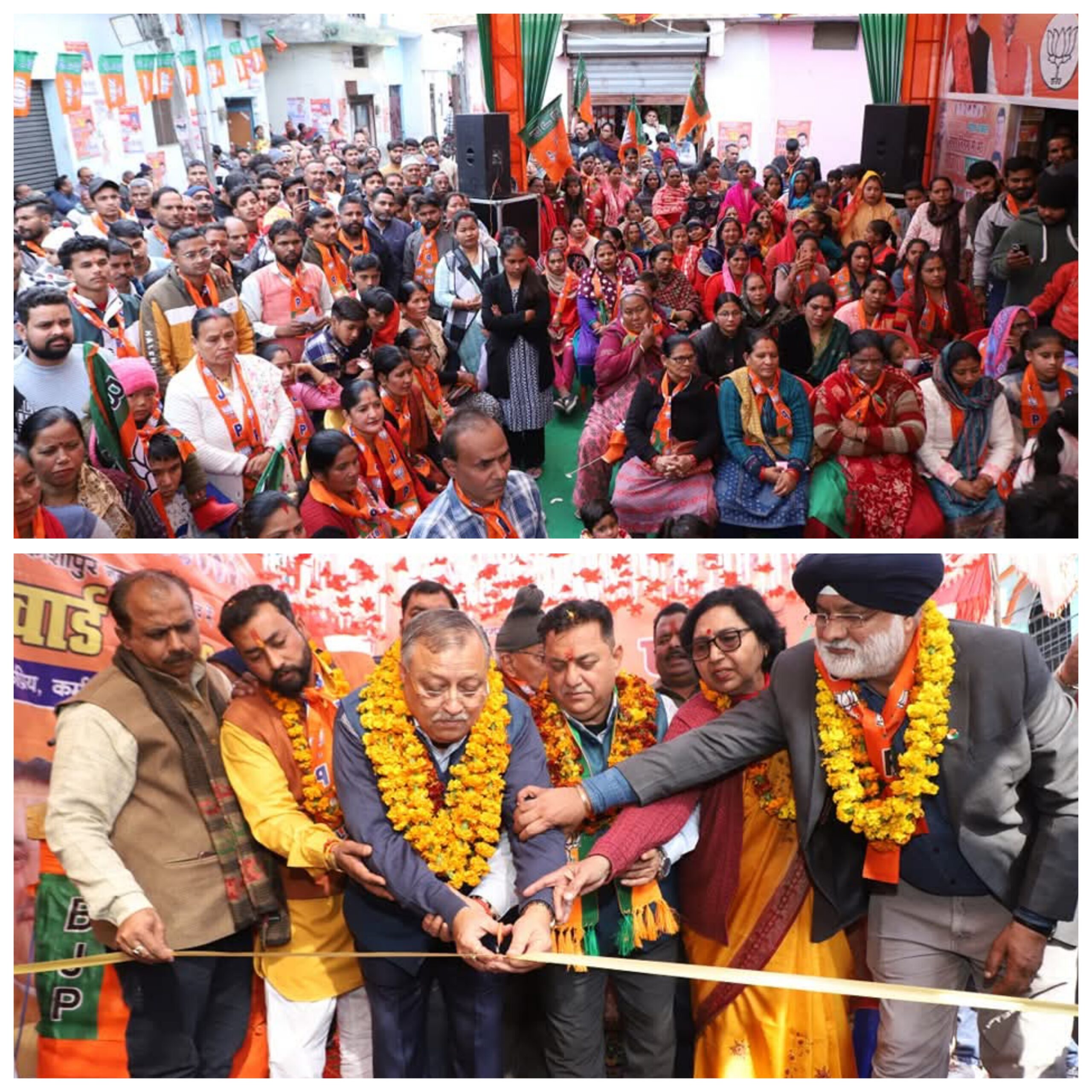 काशीपुर संवाददाता। काशीपुर में भाजपा अपना परचम लहराने की तैयारी कर चुकी है। जनता जनार्दन भाजपा को भारी मतो से विजयी बनाने का मन बना चुकी है.काशीपुर नगर निगम के वार्ड नं 40 में भाजपा से पार्षद प्रत्याशी राहुल प्रजापति के चुनाव कार्यालय का आज राम मल्होत्रा व भाजपा मेयर प्रत्याशी दीपक बाली ने फीता काटकर उद्घाटन किया। इस दौरान वरिष्ठ भाजपा नेता राम मल्होत्रा ने कहा कि उत्तराखंड में भाजपा की डबल ईजन की सरकार जनता के हितकारी योजनाओं पर तीव्र गति से कार्य कर रही है। आप सभी से भाजपा मेयर प्रत्याशी दीपक बाली व भाजपा पार्षद प्रत्याशी राहुल के पक्ष में मतदान करें। इस दौरान भाजपा पार्षद प्रत्याशी के कार्यालय उद्घाटन में भाजपा के भारी समर्थको के साथ भाजपा के वरिष्ठजनों में जिलाध्यक्ष गुंजन सुखीजा, विधायक त्रिलोक सिंह चीमा, निवर्तमान मेयर उषा चौधरी, वरिष्ठ भाजपा नेता राम मेहरोत्रा, आदि उपस्थित रहे।