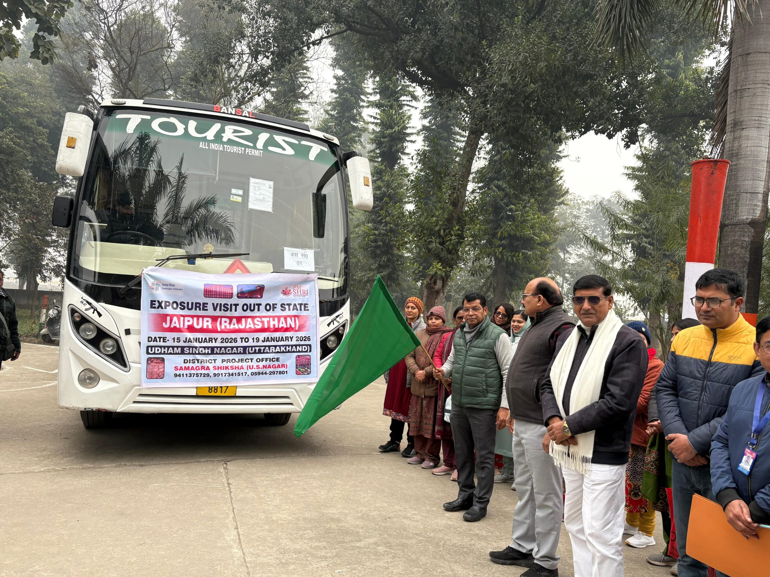 रुद्रपुर: भारत सरकार द्वारा माध्यमिक विद्यालय पीएम श्री राजकीय इंटर कॉलेज से वर्ष 2025-26 मे 8वीं व 10वीं कक्षा मे (जो वर्तमान मे 9वीं व 11वीं कक्षा मे है ) ऐसे टॉपर रहकर उत्कृष्ट प्रदर्शन करने वाले 141 मेधावी छात्र-छात्राओं जिसमें 75 लड़के 66 लड़कियां जिले भर के 30 सरकारी इंटर कॉलेज से अंतरराज्यीय भ्रमण कार्यक्रम के अन्तर्गत 5 दिवसीय जयपुर भ्रमण हेतु 3 बसों को एन झा कॉलेज, रुद्रपुर से विधायक शिव अरोरा ने हरी झंडी दिखाकर रवाना किया।